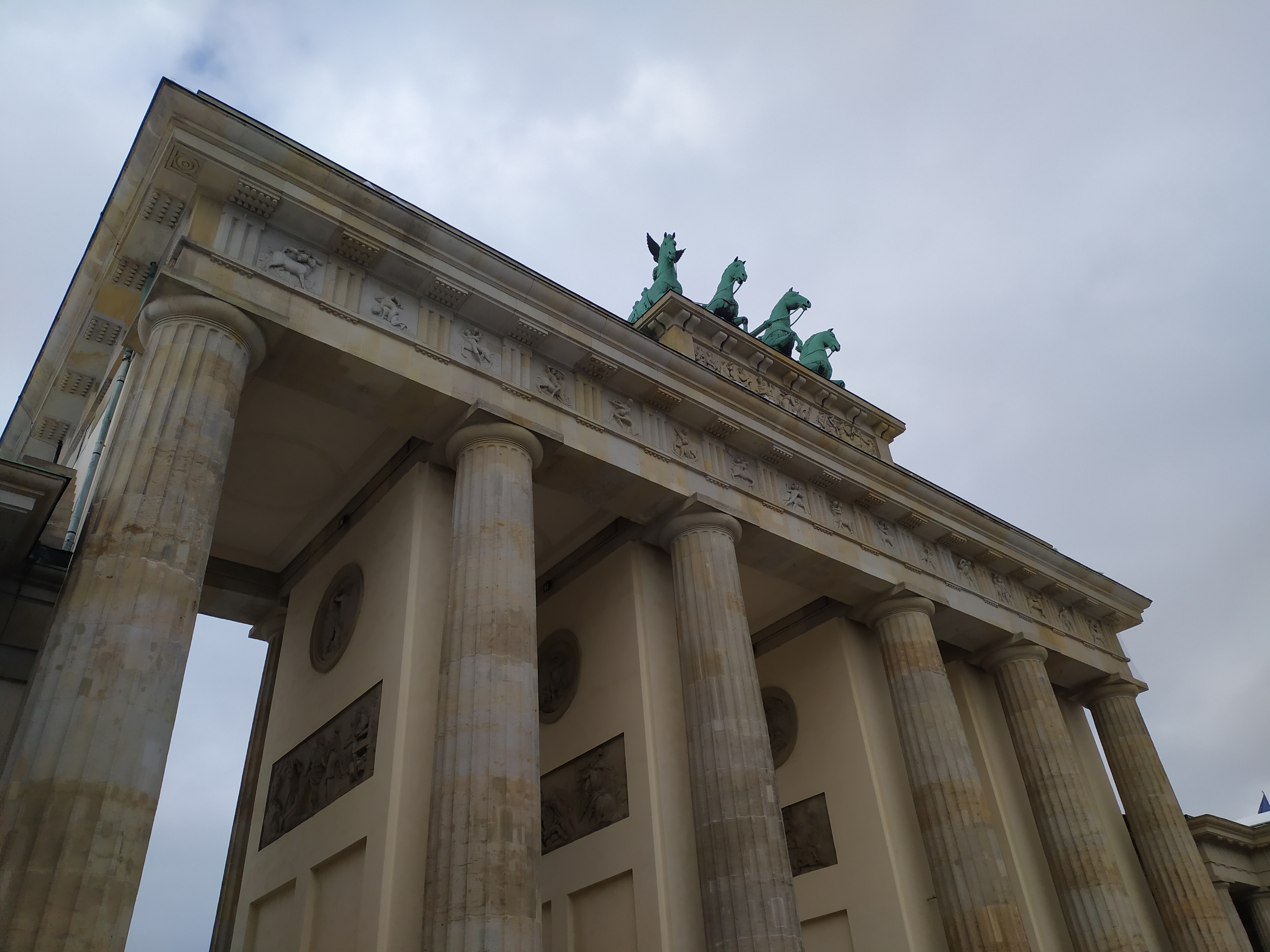 Nous arrivons vers 11h à la porte de Brandebourg. Nous l'admirons cette fois-ci en plein jour. Il y a encore des préparatifs pour des manifestations politiques. Les élections approchent !